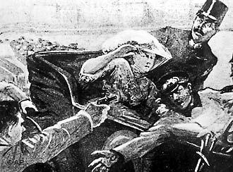 Dvadeset osmog juna 1914. godine, bog ga je ošinuo bičem od dijamantskih škorpija i on je opalio… Priča se da je ubio trudnu ženu. Žene od četrdeset i šest godina retko rađaju decu. U samoj godini aneksije, Sofija Čotek imala je težak pobačaj i to je potreslo Ferdinanda jer je predstavljalo kraj njegovog sna u velikoj porodici. Tačno je da joj je Franc u kolima govorio: