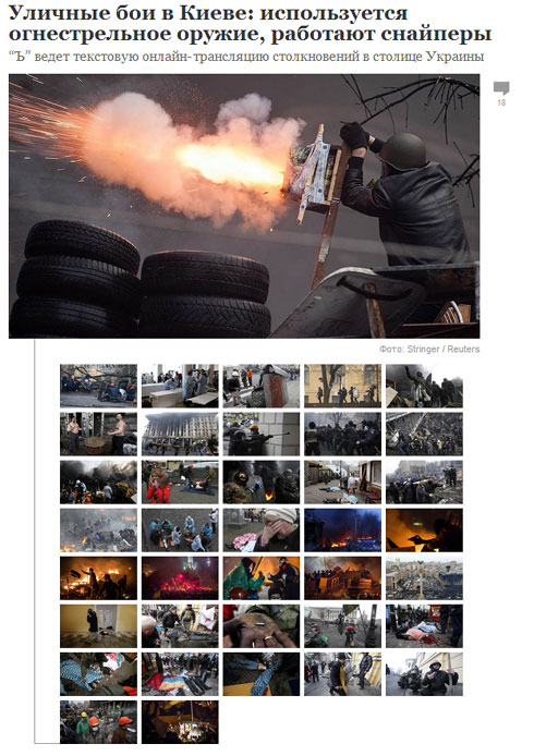 16:42. Као резултат сукоба у Кијеву је погинуло око 50 људи – опуномоћеник Врховне Раде за права човека Валерија Лутовскаја: “… али постоји информација да има знатно више жртава… Данас сам лично проверавала мониторинг кијевских болница, оне су препуне. Тамо се налазе на десетине људи са ранама из ватреног оружја. У суштини, на улицама Кијева су у току ратна дејства“