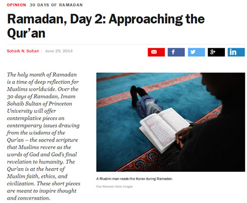 Свети мјесец Рамазан представља вријеме дубоке рефлексије за муслимане широм свијета. Током 30 дана Рамазана, имам Сохаиб Султан са Универзитета Принстон понудиће промишљања на савремена питања мудрости из Кур’ана – Књиге коју муслимани поштују као ријеч Божију и коначно Божије откривење човјечанству. Кур’ан је у срцу муслиманске вјере, етике и цивилизације. Ови кратки чланци имају циљ да инспиришу размјену мисли и разговор.