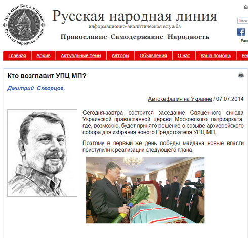 Дмитриј Скворцов на сајту „Руске народне линије“ разматра питање будућег поглавара и статуса УПЦ. По њему од првог дана побједе Мајдана нове власти су почеле да спроводе слиједећи план.