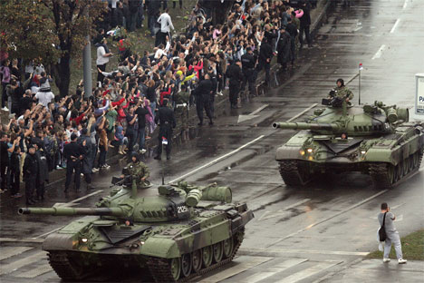 Измена: Овај чланак је промењен 17. 10. 2014. у 10:24 – додат је видео запис целе параде и Путиновог обраћања.