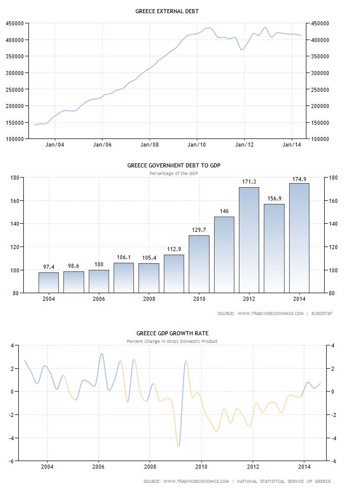 Ако су „лекови“ које је ММФ преписао Грчкој делотворни (смањење јавне потрошње, смањење дефицита буџета итд), удео јавног дуга у БДП-у Грчке би требало да се смањује – а заправо је нарастао са око 130 % (јануар 2010. године) на око 175 % (јануар 2014. године). Истовремено, драматично је порасла стопа незапослености са 9,6 % (просек за 2009. годину) на 27,5 % (просек за 2013. годину).