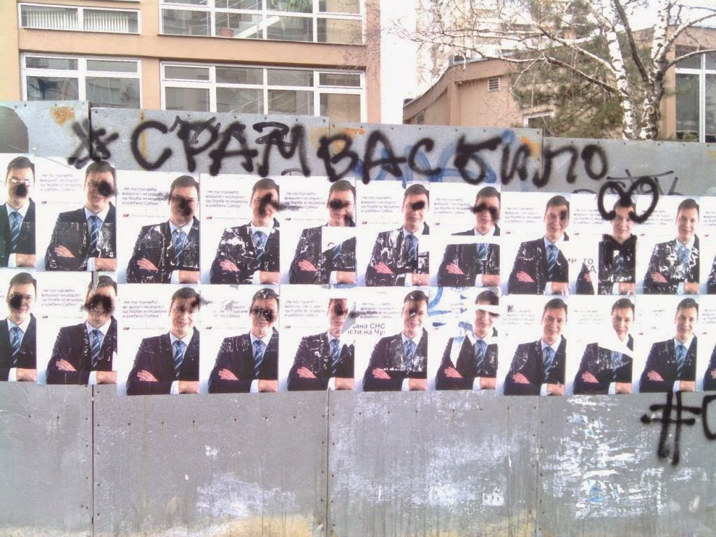 И сада опет питање: Да ли се особа са плаката стиди, као и његови маркетиншки „стручњаци“ који су ово осмислили? Шта се сугерише преко оваквог поступка? Да он и његова партија имају пара толико да могу да тапетирају сваку ограду, зид, фасаду у Београду?
