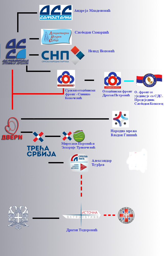 Међутим, десница у Србији наставила је да се осипа. Генезу распада смо покушали да прикажемо на графикону, мада нико не може да се закуне да је то коначно или потпуно.