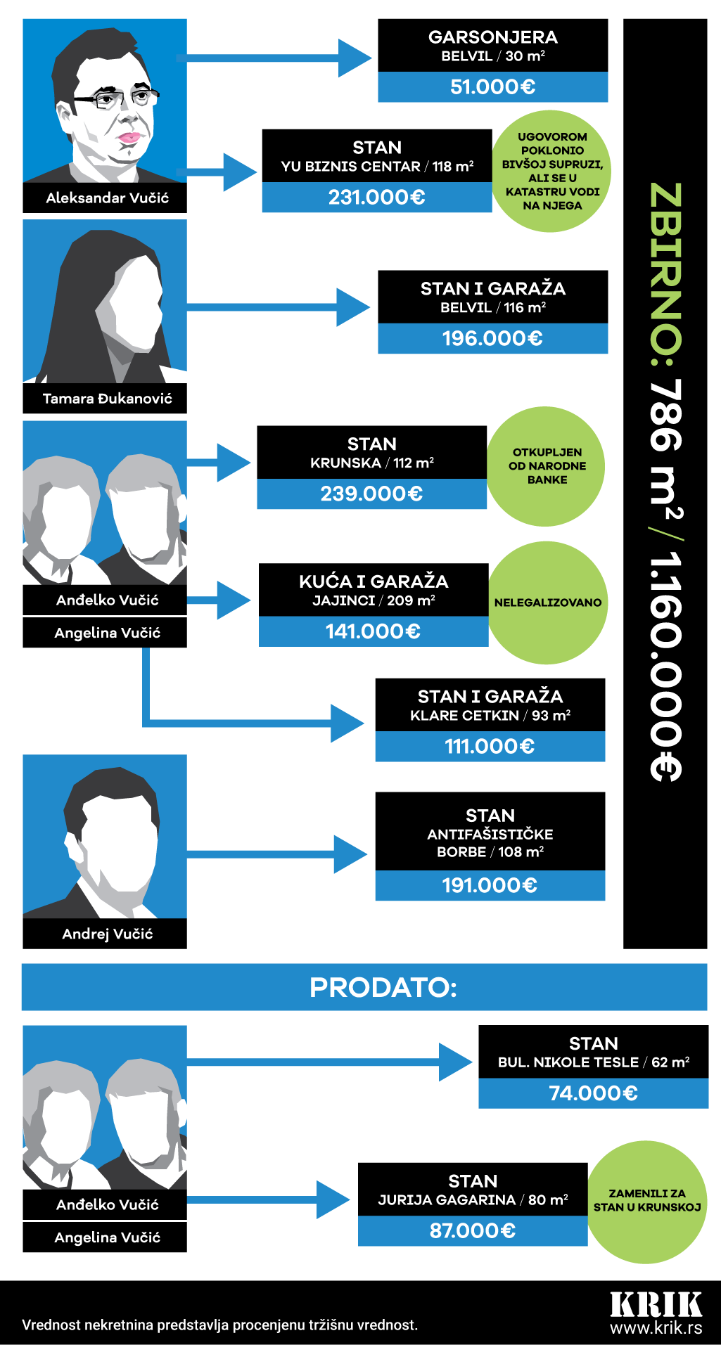 Наш други демократски изабрани премијер, који је одавно Први, од имовине нема апсолутно ништа. Чак нема ни ништа против. Бирачима је, у претходном изборном окршају, рекао: „Са вама ћу поделити све што имам. Радићемо заједно и ево вам рука! Ево вам и лакат, мани не треба ништа.“ Обећање је, као што се види, испунио.