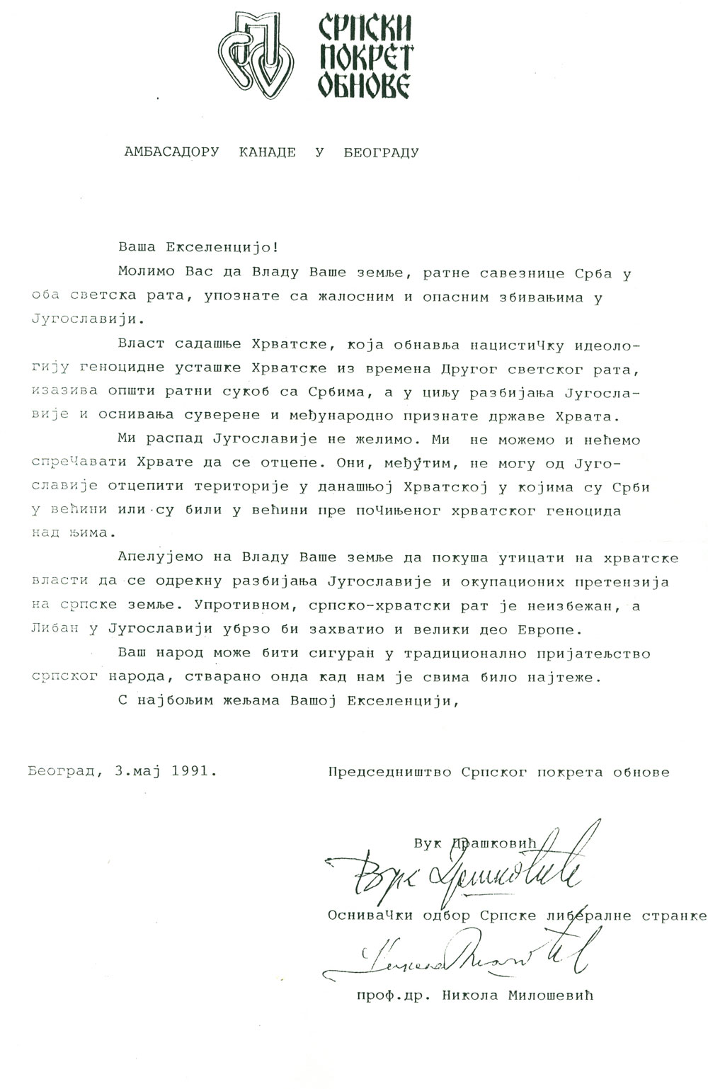 Драшковић је од почетка вишестраначја разарао сваку националну организацију. Када би нешто и припремио, лако се тога одрицао – први је опозиционар који је заговарао страно спречавање распада Југославије, стварање српске војске, наоружавање српског народа у Хрватској… Другачије казано, изразом из речника политичке коректности: најпре миротворац па ратни хушкач!