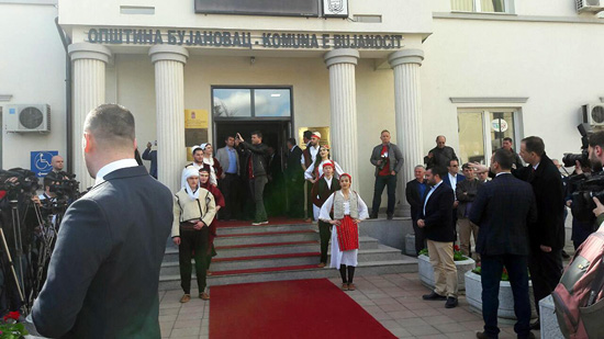 Нишанија су испред зграде општине дочекали председник општине Бујановац Шаип Камбери и председник СО Бујановац Јонуз Муслију који је и председник Националног савета Албанаца.