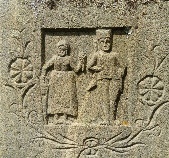 Прадеда у ставу мирно, а прабаба, макар стопалима – по символичком виђењу сеоског уметника каменоресца – окренута прадеди. Да га дочека. Ако не на овом а онда на оном свету.
