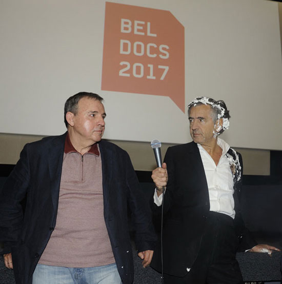 Уз повике „Убицо напусти Београд” и „Овај гад се залагао за бомбардовање Југославије осам година пре интервенције НАТО”, троје левичара припадника СКОЈ-а, прекинула су данас обраћање француског филозофа Бернара Анрија Левија у Дворани Културног центра, после пројекције његовог филма „Пешмерга” у оквиру програма Белдокса.