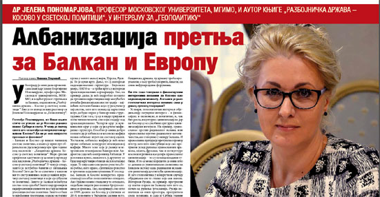 У Београду је промовисана књига др Јелене Георгијевне Пономарјове, професорке Московског универзитета, МГИМО, и водећег руског стручњака за Балкан, под називом „Разбојничка држава – Косово у светској политици“. Био је то повод за наш разговор са Јеленом Пономарјевом за „Геополитику“.