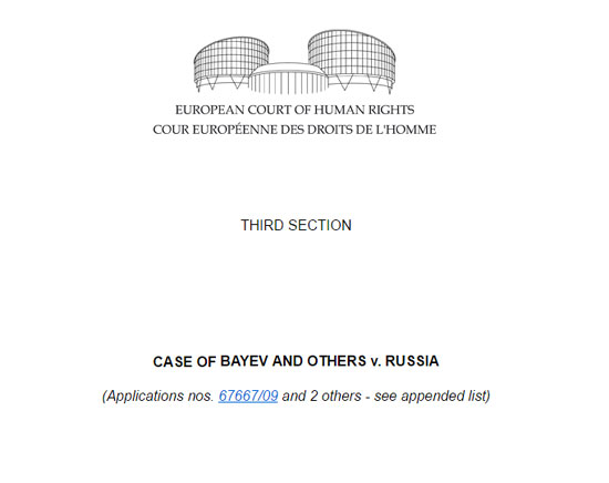 Европски суд за људска права је признао незаконитим руски закон о забрани пропаганде нетрадиционалних сексуалних односа међу децом. Одлука је објављена на сајту ECHR.