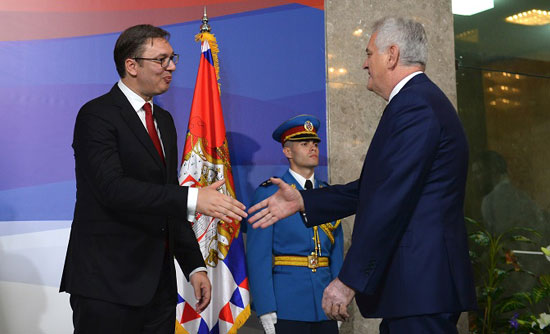 Председник Србије Александар Вучић са бившим председницима Томиславом Николићем, Зораном Лилићем и Миланом Милутиновићем. (Фото: Танјуг/Б.К.)