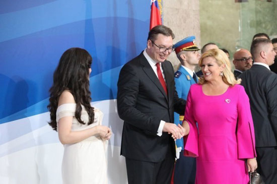 Александар Вучић са супругом Тамаром дочекује хрватску председницу (Извор: ФСК)