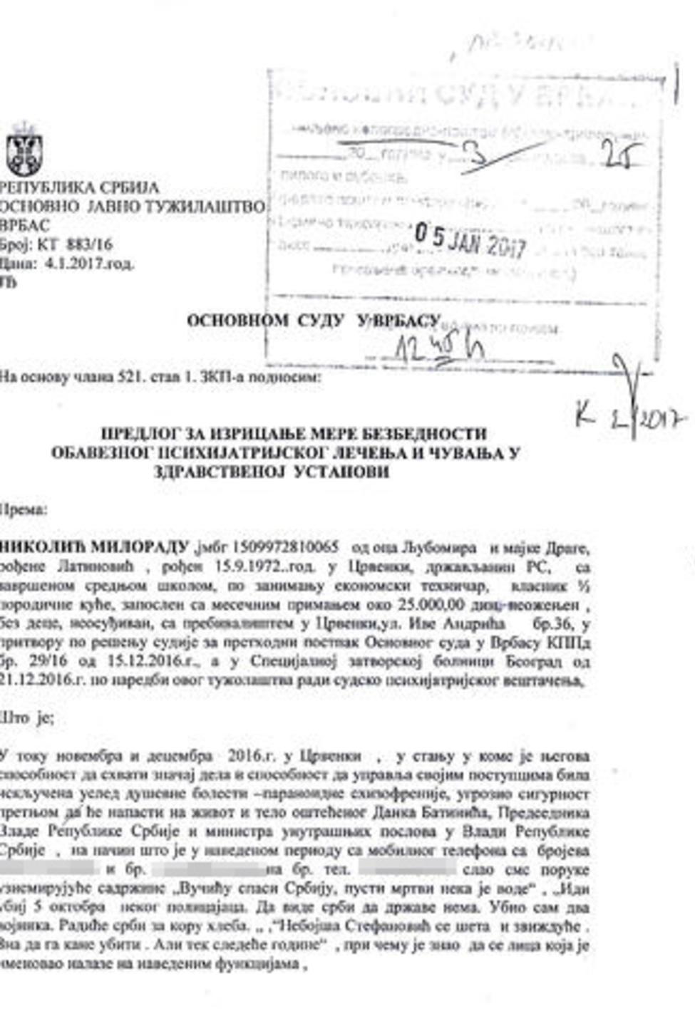 „Вучићу спаси Србију, пусти мртви нека је воде“, „Иди убиј 5. октобра неког полицајца. Да виде Срби да државе нема. Убио сам два војника. Радиће Срби за кору хлеба“ и „Небојша Стефановић се шета и звиждуће. Зна да га кане убити. Али тек следеће године“ – ове три Николићеве поруке „ревносни“ грађанин Данко Батинић пријавио је локалној полицији. Николић је због тога 14. децембра прошле године ухапшен и оптужен да је угрозио безбедност тадашњег премијера Вучића и министра полиције Стефановића. Судија Основног суда у Врбасу Снежана Поповић одредила му је притвор да би 21. децембра прошле године, након штрајка глађу, био пребачен у Специјалну затворску болницу у Београду, где је умро 14. јуна.
