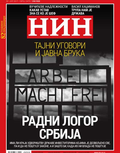 Изненађујућа је била насловна страна. На њој је црно–бела фотографија капије концентрационог логора са злокобник натписом „Arbeit Macht Frei“. Изнад слике је тема на коју се односи и слика: Тајни уговори и јавна брука а испод наслов „Радни логор Србија“. Повод за овај темат су недавни штрајкови у више предузећа широм Србије и посебно ситуација у крагујевачком Фијату која је имала највећег одјека међу владајућим политичарима и медијским посленицима.