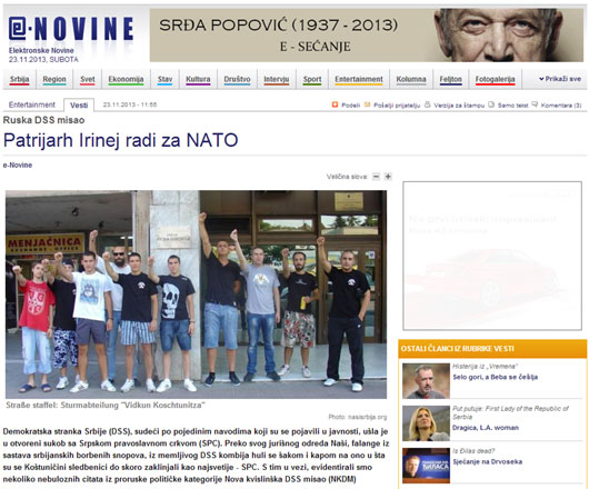 Похвала е-мрзитеља: Да нисам наставио да читам даље и да је трагичар случај дозволио да не посетим „E-novine“ – свакако да не бих арчио килобајте на препричавање објављеног текста В. Димитријевића. Кад тамо, у тој е-оази за Цанета, Бебу и Ацу (Вучића), својеврсна обрана патријарха Иринеја! Под насловом „Патријарх Иринеј ради за НАТО„, понављајући стандардне увреде и изливе мржње према Цркви („лидер клерикално политичке организације Српска православна црква Мирослав Гавриловић, партијско име Иринеј“) – да се Србљи не досете – њихове електронске новине бране нашег патријарха од Покрета „Наши“! СНП „Наши“, не баш бираним речником, констатује „Патријарх Иринеј погазио Устав Републике Србије“ и пита патријарха „Када ће одликовати Мурата и Хитлера?„. Из више разлога нећу улазити у то дописивање у једном смеру, већ да применим оно што сам назвао „Оштрица Соње Бисерко„: ако Бисерко, у ствари везаној са Србе и Српство, каже ДА – тачан и за нас добар одговор гласи НЕ; исто, ако не и више, важи и за „Е-novine“! Дакле, ако у том тексту у покушају Луковић и компанија кажу: 1) „Прва отворена оптужба пала је на Гавриловића и СПЦ гледе изласка на локалне изборе када су спцовци дозивали памети српску националну заједницу у суседној Републици Косово, првенствено оне са севера те државе“ и 2) „[Бриселски] споразум којим се Србија неповратно приближила модерним и демократским државама Европске уније трн је у квислиншком оку србијанских рускоколонаша који јавно агитују у смислу – Србија, руска губернија“ – то се мора превести да је 1) био погрешан позив патријарха и још неких великодостојника СПЦ Србима да изађу на локалне изборе, те да нема никакве сумње да је 2) Бриселски споразум нешто најгоре што смо могли потписати.