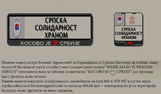 Удружење Српска солидарност храном наставља са хуманитарним акцијама. Овог пута у питању је помоћ Биљани Здравковић из Гораждевца да победи опаку болест.
