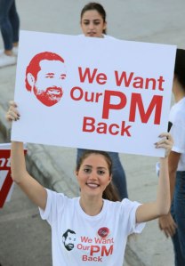 Присталица либанског премијера држи плакат којим се тражи његов повратак. Подршку Харирију пружили су учесници традиционалног годишњег маратона у Бејруту, 12. новембра (Фото: Анвар Амро, АФП)