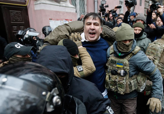 Скинут са крова након то је оптужио Порошенка да је издајник и лопов, бивши грузијски лидер је задржан… да би касније његове присталице блокирале полицијско возило којим је требало да буде превезен у кијевски притвор и омогућиле му да побегне.