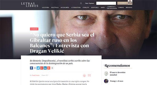 “Не желим да Србија буде руски гибралтар на Балкану“, интервју Драгана Великића за лист Летрас Либрес.