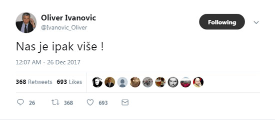 „Твит“ Оливера Ивановића с краја 2017.