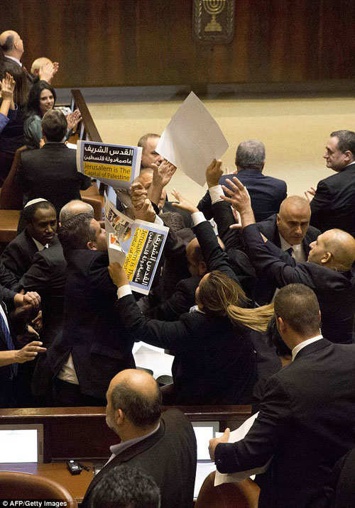 Са седнице су избачени арапски посланици који су протестовали због Пенсовог говора у Кнесету