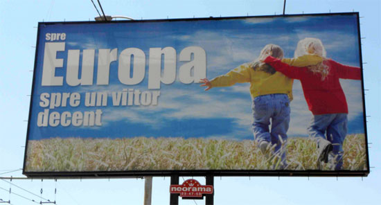 Изборна кампања у Молдавији 2014. је била испуњена порукама о стратешком опредељењу земље. Натпис: Према Европи, према пристојној будућности (Фото: LSE)