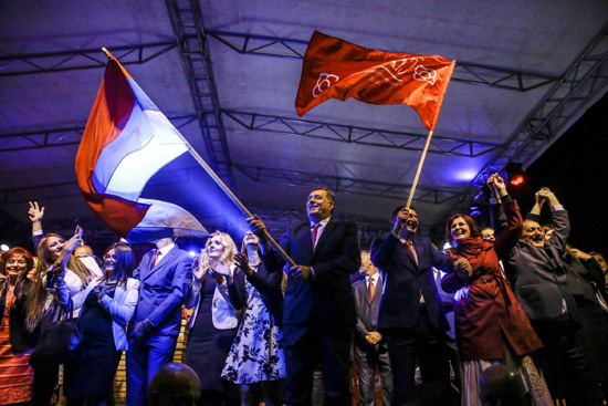 Милорад Додик слави после референдума о 9. јануару као Дану када је Радован Караџић прогласио РС за српску државу у Босни (Фото: Samir Yordamovic/Anadolu Agency, via Getty Image)