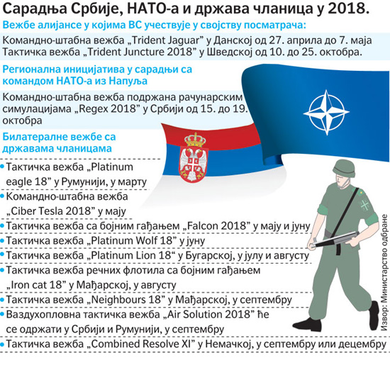 Вежба под окриљем НАТО-а, односно Евроатлантског координационог центра за ванредне ситуације, специјализованог дела Алијансе за реаговање у случају природних катастрофа и технолошких инцидената, одржаће се у октобру у Србији, потврђено је „Политици” у МУП-у Србије. Суорганизатор вежбе, која ће се одржати под називом „Србија 2018”, јесте Сектор за ванредне ситуације МУП-а.