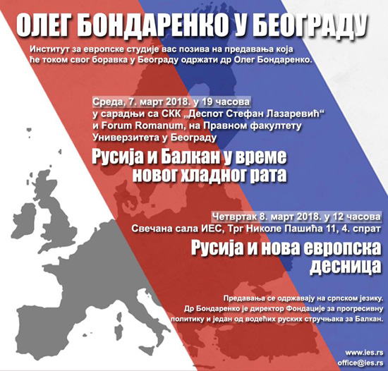 Институт за европске студије (ИЕС) вас позива на предавања која ће током свог боравка у Београду одржати др Олег Бондаренко