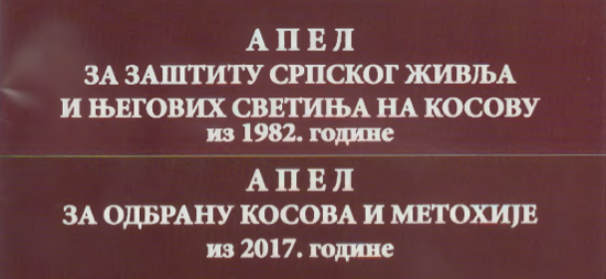 Доносимо публикацију ОД АПЕЛА ЗА ОДБРАНУ КОСОВА И МЕТОХИЈЕ из 1982.г. ДО АПЕЛА из 2017. г. коју је приредио протојереј-ставрофор др Велибор Џомић