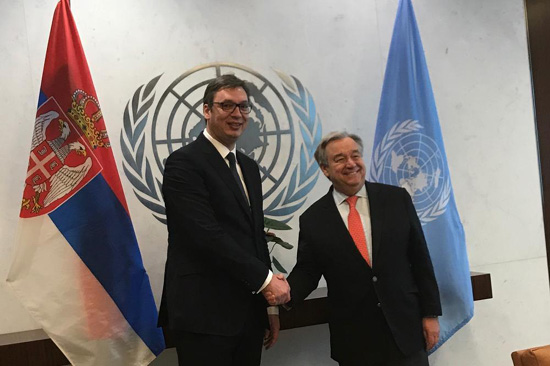 Током посете Њујорку AV се састао са генералним секретаром Уједињених нација. Пожалио му се да се не поштује Резолуција УН 1244 и да је на помолу оснивање војске Косова. Овом приликом, како каже Вучић, Антонио Гутерес је показао велико разумевање за стање у овом делу Србије. „Он све разуме”, изјавио је Вучић после састанка, заборављајући једино да дода како Гутерес ништа и не може док му то не одобри Бела кућа.