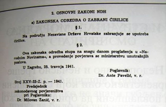 Забрана ћирилице у НДХ