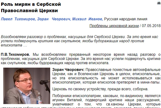 П. В. Тихомиров: Како објаснити чињеницу да поједини представници црквене јерархије деловање српских православних правника и уредника православно-националних сајтова доживљавају као нешто опасно и несумњиво непријатељски?