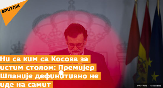 Разлог за Рахојев изостанак је Косово. Шпански премијер, наиме, категорички је одбио да седи за истим столом са Хашимом Тачијем или било којим представником самопроглашене „државе Косово“, да се фотографише или разговара са њима, пишу „Вечерње новости“.