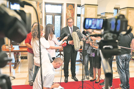 На молбу новинара да прокоментарише изјаву председнице Хрватске Колинде Грабар Китаровић да су Хрватска и Албанија браћа по оружју, нагласио је да то довољно говори о тежини нашег положаја и колико неки не желе наш напредак. „Честитам на изјави. Нама нису потребна браћа, већ пријатељи. Нека се братиме, ми ћемо да гледамо да напредујемо економски”, поручио је Вучић. Казао је да, што се оружја тиче, неки морају да живе у прошлости. „Колико их је изгубило живот за Хрватску, не занима мене нити Србију. Ако неко мисли да треба да ме то посебно плаши, не плаши ме ни најмање. Ми радимо свој посао, да што више паметне деце имамо, која гледају у будућност”, казао је Вучић.