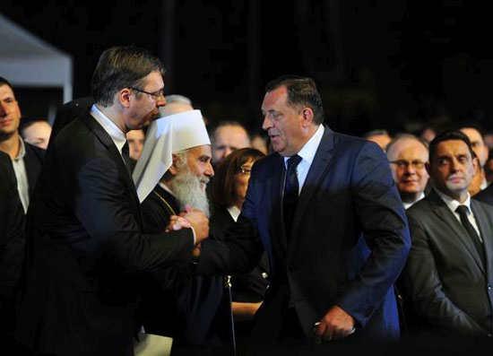 Александар Вучић, патријарх Иринеј и Милорад Додик (Архивска фотографија: Танјуг/Драган Станковић)