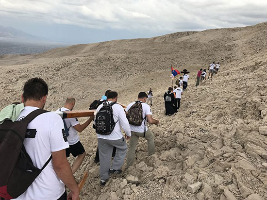 Чланови Удружења „Јадовно 1941“ поставили су „Часни крст“ на месту где су жртве покопане те ноћи 1941. године, а пре тога су прешли кршевити камени пут од нешто мање од три километара, након што су се искрцали из катамарана, који их је превезао од Карлобага до увале Слане. Ходочасници су се прво спустили до јеврејског логора каменим путем који су правили заточеници пре 77 година, затим се попели до места где је раније постављен крст, а које је делило јеврејски и српски логор, да би се преко српског логора упутили путем којим је 791 жртва прошла до места где су закопане у рововима.