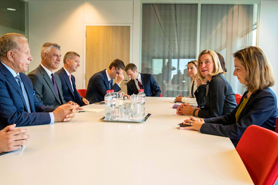 Могерини у разговору са делегацијом из Приштине (Фото: Танјуг)