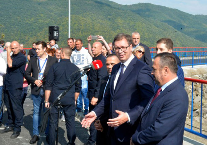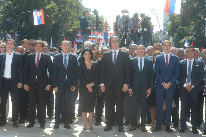 Александар Вучић на централном тргу у Косовској Митровици, септембар 2018. (Фото: Танјуг)