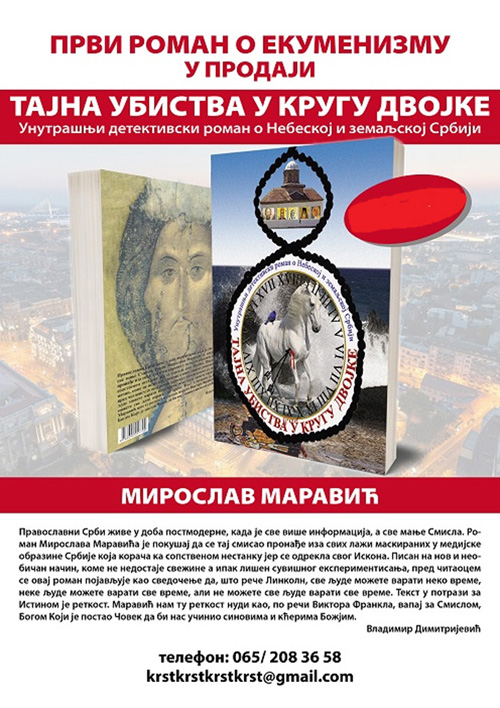 Намучио сам се око романа Мирослава Маравића „Тајна убиства у кругу Двојке“. Али, није ми жао. После гомила непотребности које читам сваког дана, да би о њима могао да пишем и да их коментаришем, ово дело ми је пружило задовољство Смисла. Наиме, у доба у коме живимо, кад је, како рече Бодријар, све више информација а све мање смисла (што је, по Томасу Елиоту, последица чињенице да смо мудрост изгубили у знању, а знање у информацијама), велико је задовољство срести се са писцем који од почетка зна шта жели, и који то и остварује. А знамо шта је Маравић желео: желео је да пропита епоху, у којој је, иако је веронаука у школама и теологија на Универзитету, могуће да се продају Косово и Метохија као света и заветна земља, да се политички хомосексуализам устоличује на власти, да се потапа Ваљевска Грачаница, велика светиња србског народа после чијег потопа је наступио невиђени потоп духа и душе потомака Светог Саве. Изједначавање Литургије и ријалитија, при чему су ријалитији популарнији, такође је једно од питања која су се наметнула Маравићу. То је и доба рата против дечјих душа, о коме Маравић пише: „У књизи Свет око нас за децу првог разреда основне школе налази се упитник следеће садржине: Који ти је омиљени празник? и понуђени одговори, у виду цртежа: 1) Нова година; 2) Осми март и 3) Ноћ вештица“. Е то је, брате мој, Србија 2016. године! То је наша српска апокалипса! Ето шта уче наша деца, у земљи са преко осамдесет посто православних! И замисли сад, моја мала братаница како је реаговала! Пошто ни њена породица у кући нема телевизор – тај субверзивни пожар слободе се шири, хвала Богу! – дете од седам година је реаговало на ово невиђено насиље модерног обезбоженог образовања тако што није заокружило ниједан од понуђених одговора!“