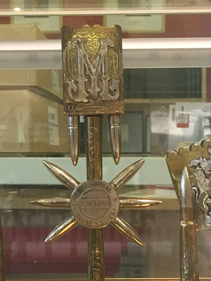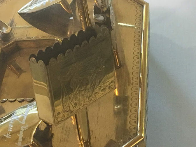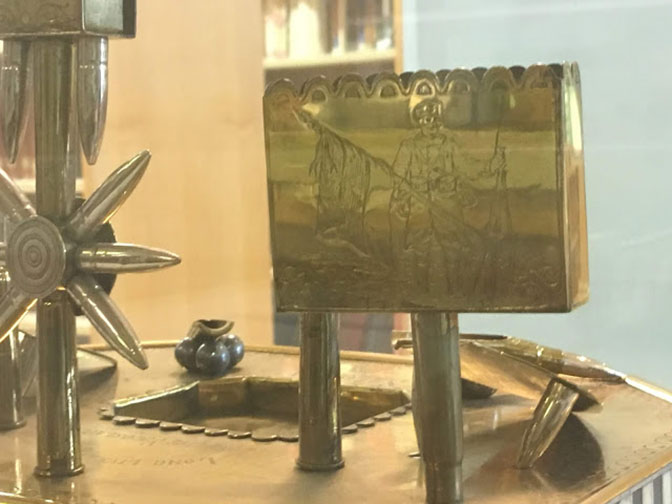 У Ратном архиву Краљевог колеџа у Лондону је изложено више вредних експоната, али и један предмет који ми је убрзо привукао пажњу. Веште руке српских војника на Солунском фронту су, на основу јединог материјала који им је био доступан – ратног материјала – направиле јединствено уметничко дело.