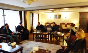 У манастирској трпези доручак, гибаница и кисело млеко. У челу стола је игуман, отац Сава Јањић (можда га знате са фејса, он стално објављује двојезичне постове којима странцима скреће пажњу на стање људских права на КиМ). После доручка, студенти су опет у разгледању, а ми старији са Савом у беседи. Свако је словце част што му присуствујеш. Духовност и духовитост заиста потичу са истог изворишта и заиста су нераздвојни. У манастирској библиотеци (ах, каква је!) Кума предаје оцу Сави и Петру највећи део понетих књига. На посебно место слажу се дела њиховог пријатеља и савременог српског просветитеља, Душана Т. Батаковића. И ја ћу најзад предати једини примерак Јастребова. Сава нам поклања монографије о Дечанима. Каже, морамо се сликати! На растанку смо радосни. Не зато што одлазимо него зато што смо били. И што ћемо бити!
