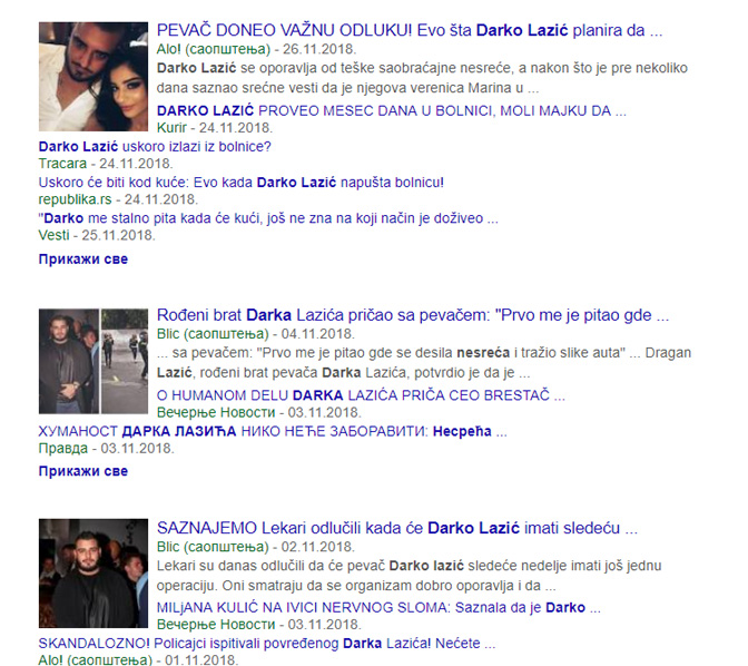 Неки од наслова који се баве Дарком Лазићем (Извор: Гугл/Снимак екрана)