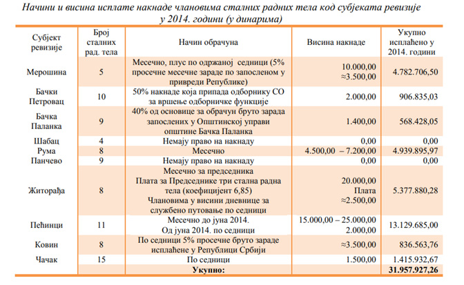 У таквим и сличним комисијама, које заправо служе само за испумпавање пара у корист нижих ешалона власти, у Србији је ангажовано неких 48.000 особа, а просечна годишња зарада члана комисије је 54.000 динара (овде).