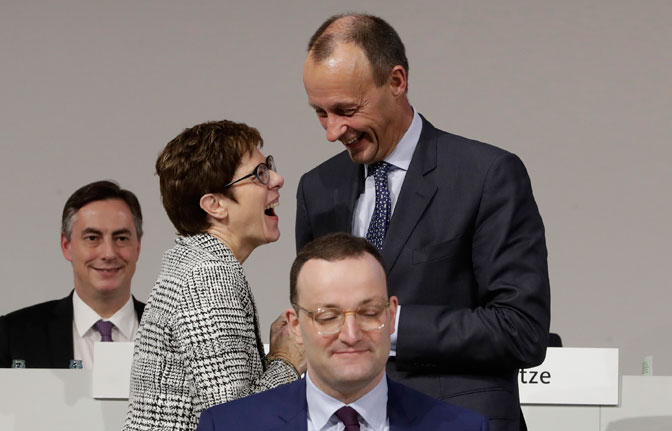 Наследница Ангеле Меркел на челу Хришћанско-демократске уније (ЦДУ) је Анегрет Крамп-Каренбауер, која је у другом кругу гласања у Хамбургу добила подршку 517 гласова. Од 999 делегата (два нису била присутна), њен противкандидат из првог круга Фридрих Мерц добио је 482 гласа.