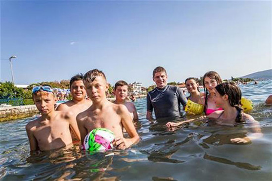 Арно Гујон и деца са КиМ коју је одвео на море (Фото: Танјуг)