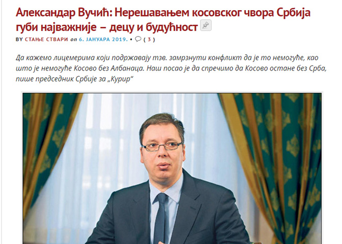 У новогодишњем интервјуу за „Курир“ председник Србије безобразно све оне који су за замрзнути конфликт назива лицемерима. Народни покрет Срба са Косова и Метохија „Отаџбина“ и српски народ са КиМ су за замрзнути конфликт и нису лицемери али је зато Александар Вучић издајник.