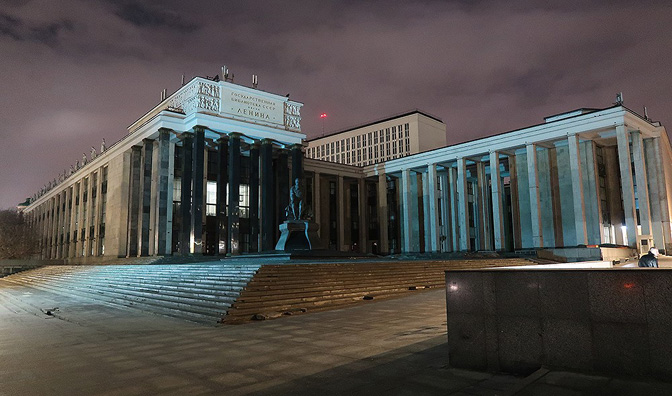 Па и кад све успем, треба да нађем салу у тој зградурини. После сам прочитао наставак обавештења – јесте Државна библиотека (названа наравно – Лењинова), али то јој дође као неки депанданс, Дом Пашкова, лепа стара зграда, умирујуће средње величине и нема везе са Лењином…