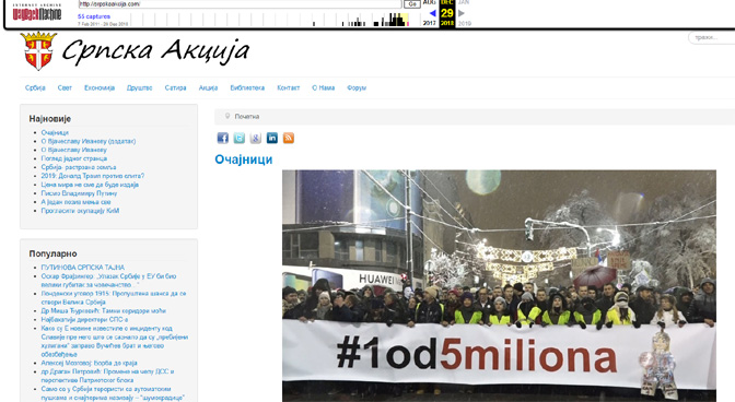 Изглед сајта Српске акције с краја прошле године (Извор: archive.org)
